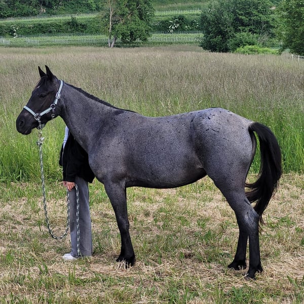 Potion came to us from the USA at the age of 1.5 years and was carefully started under saddle at 3.5 years. After a short acclimatization period, she has spent a lot of time with me alone in the countryside and has remained calm around dogs, sheep, horses in adjacent pastures, cars, tractors, cyclists, and motorcycles. She can be tied up anywhere, is easy to saddle and bridle, always curious and attentive, and has also handled the move to Germany with ease. She is familiar with other riders and stays relaxed around them as well. She is well-behaved for the farrier and loading, and had her first dentist appointment last October, which went well. Despite her youth and many travels, she is people-oriented and friendly. We are looking for a home in good hands, where the rider is eager for further training and shared experiences. We are parting with her because we want to maintain only a certain number of horses on our property. She is currently in training.