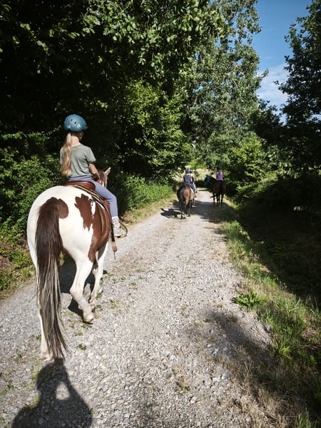 En raison d'une grossesse inattendue, je dois malheureusement me séparer de 1 à 2 de mes chevaux. Voici les options : **Holy Moly**, 5 ans, bai avec 4 chaussettes et une étoile. Elle a déjà eu une pouliche magnifique. Elle est montée en 4ème allures, mais le Tölt doit être activement demandé, sinon elle préfère le trot. Elle possède des allures très souples et un galop agréable comme sur un rocking-chair. Sur le plan du caractère, elle est douce et a une belle présence. Elle a principalement été monté en extérieur, les vélos, voitures et camions ne la dérangent pas. Elle est attentive, mais si elle a peur de quelque chose, elle s’arrête pour regarder, sans partir en fuite. Elle connaît le travail à la longe et en selle : épaules en dedans, épaules en avant, arrière, en avant, en arrière, je l’ai beaucoup travaillé. Elle est très fine à monter et son rythme est toujours régulable. **Action**, 4 ans, 152 cm, pie fauve. Elle est à 5 allures, montée en 4ème allures jusqu’à présent, mais elle propose volontiers le Tölt. Son nom ne correspond pas à son tempérament, elle a plutôt un caractère calme et poli. Elle a été nommée pour sa forte action de l’avant-main en Tölt. Comme Holy, elle est fine à monter, connaît les exercices au sol et en selle, et est principalement utilisée en extérieur. C’est une jument curieuse et intrépide qui aime découvrir le monde. Lorsqu’elle est surprise par quelque chose de nouveau, elle peut sauter un peu, mais cela arrivait plus souvent quand elle était jeune, maintenant c’est rare. Je pense qu’elle sera une monture fiable dans quelques années. Une jument cool avec laquelle on peut conquérir le monde. Elle est actuellement montée par une enfant de 10 ans. C’est une jument très polie qui cherche la connexion avec l’humain. La liberté est sa activité préférée. Très câline. **Isabella**, 4 ans, 145 cm, baie crème. Elle est à 4 allures et possède un Tölt très clair et souple. Je l’ai importée des États-Unis, de Tess Williams, fille du champion du monde Rowdy Rawhides Rufio. Elle est très douce avec les enfants, qui aiment la cajoler. Elle est conduite ou montée en main par des enfants en extérieur, et réagit très finement. Sur le manège, ma fille de 7 ans la monte aussi en liberté. Elle est généralement calme et posée, mais les grosses machines bruyantes lui font encore peur. Cependant, elle ne s’enfuit plus en courant, et avec suffisamment d’espace et de patience, elle se laisse facilement passer. Nous l’habituons progressivement, et les voitures ne sont plus un problème. Elle connaît aussi le travail à la longe et en selle, et est souvent en extérieur. N’hésitez pas à me contacter. Les essais en selle et la prise de contact sont bien sûr possibles, je demande une participation de 30 euros pour l’essai.