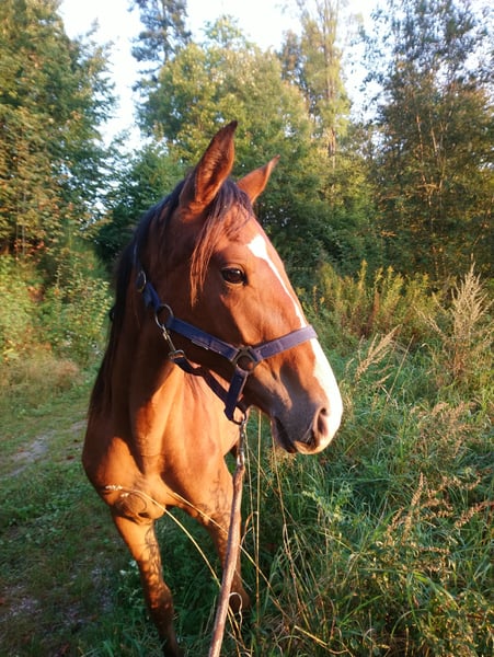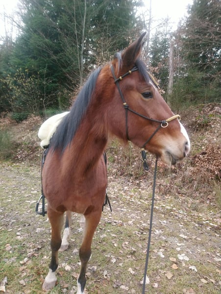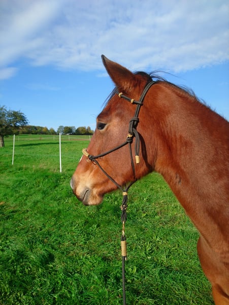 Vente d'une élégante jument de Speed Racking Horse, née en 2020, dans une magnifique teinte de brun. Elle mesure 1,53 m et possède de bonnes bases. Elle est quadruple allures, avec un pas très confortable, un trot fluide et clair, ainsi qu’un galop merveilleux, oscillant entre rythme détendu et vitesse rapide, selon la demande. En selle, elle privilégie naturellement le trot, le Tölt doit être sollicité et travaillé, sinon elle retombe rapidement dans le trot. En tant que poulain, elle a déjà été manipulée en main, lors de nombreuses promenades pour découvrir son environnement, avec de petites exercices intégrés. À l’âge de 3 ans, je suis montée dessus de façon ludique à plusieurs reprises, ce qui a facilité son apprentissage du débourrage : elle a été facile à monter et à partir en balade. Elle connaît le travail à pied avec des exercices de latéral, la mise en selle, la cession de tête, l’arrière-main, le pas et le trot. Tout cela peut également être demandé en selle. Elle réagit de façon fine et fiable aux aides du cavalier. Nous faisons principalement des sorties en extérieur. Elle connaît les chiens, le trafic routier et reste calme même face à des camions. Elle est très attentive en selle : si elle a peur de quelque chose, elle s’arrête et l’observe d’abord. Elle ne s’enfuit pas. Elle a une attitude amicale et ouverte, vient volontiers vers l’humain et aime participer. Elle donne souvent une sensation de sécurité à son cavalier, même si, en raison de son âge, elle a encore besoin de la protection de son humain. C’est pourquoi elle est actuellement plutôt réservée aux cavaliers expérimentés. Ma fille la monte uniquement en longe. Elle a déjà donné naissance à un poulain de très belle apparence. Si Holy a éveillé votre curiosité, n’hésitez pas à me contacter pour plus de questions. Une visite est, bien sûr, souhaitée.