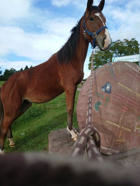 Verkaufe elegante Speed Racking Horse Stute, geb. 2020, in einem wunderschönen Braunton, der vor allem im Herbst mit dem Laub um die Wette strahlt. Sie ist 153 cm groß und hat ein gutes Fundament. Sie ist 4 Gänger, hat einen sehr bequemen Schritt, einen tollen taktklaren Trab und einen wunderbaren Schaukelpferdgalopp der vom Tempo her von gemütlich bis schnell abrufbar ist. Beim Reiten bietet sie von sich aus lieber den Trab an, der Tölt muss angefragt werden und muss geritten werden, sonst fällt sie schnell wieder in den Trab. Sie geht alleine oder in der Gruppe, hinten als auch vorne ins Gelände. Durch ihre bequemen Gangarten ist sie sicher auch für längere Ritte geeignet. Einen besonderen Ritt haben wir gemeinsam in der Pfalz gemacht, als sie zum Decken beim Hengst war. Die Stute lief schon als Jährling als Handpferd mit, wir haben viele ausgiebige Spaziergänge gemacht und die Umwelt kennengelernt, kleinere Übungen eingebaut und mit 3 Jahren bin ich spielerisch immer wieder auf sie draufgesessen, sodass das Einreiten ein Kinderspiel war, drauf sitzen und losreiten. Sie kennt Bodenarbeit mit Seitengängen, Schulter herein, Kruppe herein, Rückwärts, vorwärts. Wobei alles auch beim Reiten abrufbar ist. Auf die Reiterhilfen reagiert sie fein und zuverlässig. Wir waren auch schon bei einer Trainerin die akademische Reitkunst macht, dort hat sie auch schon mal die Halle gesehen und ist Hänger gefahren. Wir sind hauptsächlich im Gelände unterwegs, sie kennt Fahrräder, Hunde, Straßenverkehr und bleibt auch bei Lastern gelassen. Sie ist sehr aufmerksam beim Reiten, wenn sie vor etwas Angst hat, dann bleibt sie stehen und schaut es sich erst mal an. Sie rennt nicht weg. Sie hat eine freundlichen und aufgeschlossenen Art, kommt eigentlich immer her und macht gerne mit. Sie gibt dem Mensch oft das Gefühl von SIcherheit obwohl sie selbst eigentlich aufgrund ihres Alters noch Sicherheit und Klarheit von ihrem Menschen braucht. Deshalb ist sie im Moment auch eher was für erfahrene Reiter. Meine Tochter reitet nur geführt auf ihr. Sie hatte bereits ein sehr schickes Hengstfohlen und ist im Stutbuch 1 eingetragen Hat Holy deine Neugier gewonnen, melde dich doch einfach für weitere Fragen. Eine Besichtigung ist natürlich erwünscht.