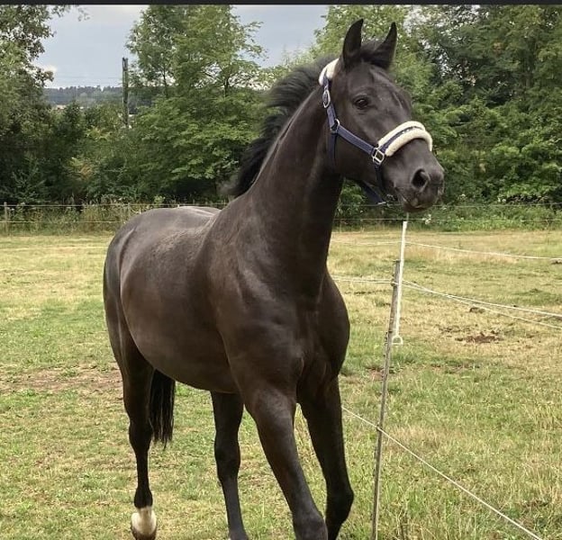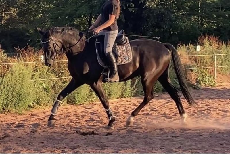 Aprendizaje y curioso compañero de deporte, que disfruta ser montado. También se adapta fácilmente a diferentes jinetes y jineteas (incluidos niños en riendas). Gracias a su excelente conformación general y a su talento para los movimientos laterales, se le suele ver principalmente en el círculo de doma. Sin embargo, a Legolas también le gusta saltar, hacer paseos en el campo o trabajar en el suelo. Criado cuidadosamente en nuestra finca, iniciado en la mano y actualmente entrenado hasta la categoría de doma M. Ha competido en categorías L y M de doma. Actualmente, está siendo entrenado por una jinete de 17 años en colaboración con su entrenadora, que ha tenido éxito hasta la categoría S**. Por favor, envíe mensajes de texto o de voz únicamente al teléfono 0171…. Le asesoramos con competencia y dedicación durante una visita con prueba de monta.