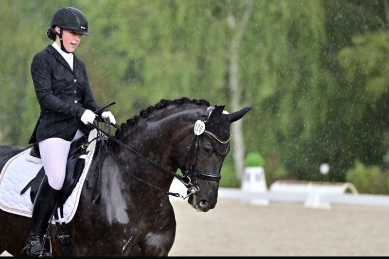 Lern- und wissbegieriger Sportpartner, der es liebt, geritten zu werden. Er stellt sich auch problemlos auf verschiedene ReiterInnenn (auch ausgebunden auf Kinder) ein. Auf Grund der sehr guten GGA und seines Talent für Seitengänge sieht man ihn primär im Dressurviereck. Genauso gerne macht Legolas jedoch auch einen Sprung, geht ins Gelände oder arbeitet am Boden. Direkt hier bei uns, den Züchtern sorgfältig aufgezogen, angeritten und aktuell bis Dressur Klasse M ausgebildet. L** und M Dressur gelaufen. Er wird zur Zeit von einer 17 jährigen Reiterin in Kooperation mit ihrer bis zur Klasse S** erfolgreichen Trainerin ausgebildet. Text-/Sprachnachrichten bitte ausschließlich auf Tel. Nr. 0171…. Wir beraten Sie bei einem Besuch mit Probereiten sachkompetent und nehmen uns Zeit für Sie.