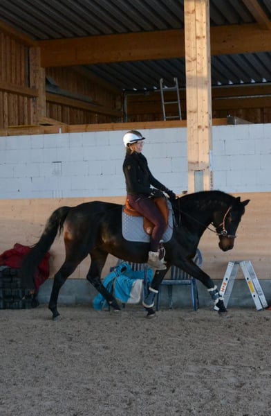 Loving and playful 11-year-old Arabian Oldenburg mix. He is familiar with classical groundwork, lunging, riding indoors, on the arena, and in the field. Currently, he is stabled in an active barn with a gelding group. He enjoys free work and classical groundwork the most. He can only be entrusted to the very best hands.