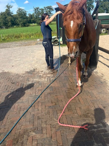 Allround paard, voor een ruiter met enige ervaring die een maatje zoekt. 12-jarige vos ruin – ±1.65 m Hij bleek voor mij (manege niveau) als eerste eigen paard uiteindelijk toch wat te weinig tijd en daardoor wat te veel uitdaging, en daarom zoek ik voor hem een betere match bij iemand met meer ervaring die met hem verder wil werken. Sim is een gevoelige en intelligente ruin en heeft een lief karakter. Hij kan soms bij nieuwe dingen een binnenvetter zijn en kan dan langzaam ondanks zijn koele uitstraling wel eens lichte spanning opbouwen. Ben je zelf zeker en duidelijk dan zul je hier weinig van merken. Mijn instructrice heeft hem nu in training en daar gaat het heel goed😊 Daardoor heeft hij denk ik een duidelijkere en zelfverzekerde ruiter nodig. Hij houd op zijn tijd ook van een sprongetje! • gewend aan 24/7 buiten staan • altijd netjes bijgehouden door de hoefsmid • tanden gedaan (rapport is aanwezig) • hart goed • algemeen gezond en sterk Omdat een goede match met Sim voor mij voorop staat, is het mogelijk om eerst x langs te komen om te voelen of er een klik is en daarna om te rijden. Mocht je toch graag gelijk kennis willen maken onder het zadel, dan is dat mogelijk tegen een vergoeding en altijd onder begeleiding van de trainster die hem momenteel ook in training heeft. Denk je dit is echt het paard wat ik zoek dan wil best een paar video’s sturen maar je krijgt in het echt een beter beeld en gevoel bij het paard zelf dus ik steek dan ook liever mijn tijd in een kennismaking ☺️ (Neem aan dat je ook niet je man of vrouw via een video hebt uitgezocht🤪) Inruil mogelijk op bv men paard pony of heel braaf recreatie paard. Stuur gerust een bericht voor meer informatie of om kennis te komen maken.