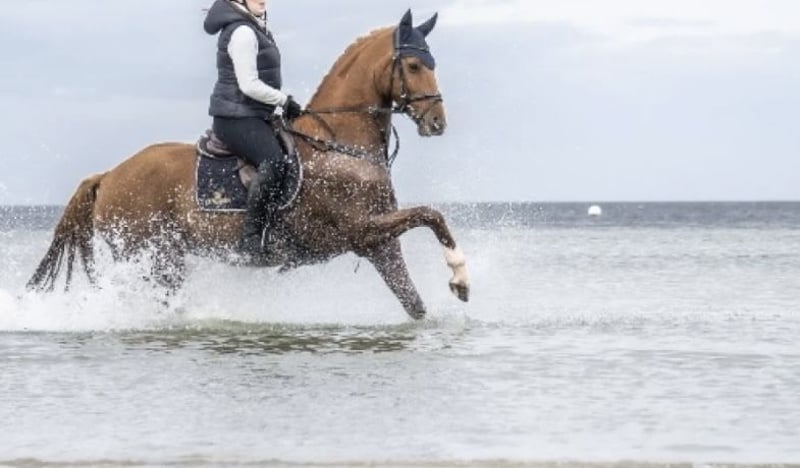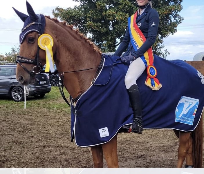 Wir suchen ein neues Zuhause für unseren talentierten Wallach, geboren im Jahr 2012. **Merkmale:** - Rasse: Deutsches Reitpferd - Geschlecht: Wallach - Farbe: Fuchs - Stockmaß: 165 cm -Abstammung : Quiwi Dream x Calypso Dieser charmante Wallach überzeugt nicht nur durch seine ansprechende Farbe, sondern auch durch seine hervorragenden Fähigkeiten im Springen. Er hat ein ausgeglichenes Temperament und ist sowohl für erfahrene Reiter als auch für ambitionierte Einsteiger geeignet, die ihre Fähigkeiten im Springen weiterentwickeln möchten. Unser Pferd ist gut ausgebildet, brav im Umgang und hat bereits an verschiedenen Turnieren teilgenommen. Er ist sowohl in der Halle als auch im Gelände zuverlässig und zeigt stets Freude an der Arbeit. Wenn Sie auf der Suche nach einem zuverlässigen Partner für den Sport oder die Freizeit sind, dann könnte dieser Wallach genau der richtige für Sie sein! Er ist mehrfacher Kreismeister im Jugendbereich. Außerdem ist er ein Lehrmeister für Groß und Klein . Seine Platzierungen reichen von Mini Springen bis zur Klasse M (aktuellste Platzierung Kl.M ) . Bei Interesse oder weiteren Fragen freuen wir uns über Ihre Nachricht. Besichtigungen sind nach Vereinbarung möglich.