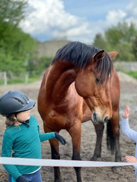 Rusty ist seit fast 6 Jahren bei mir in der Reitschule und seit langem das beliebteste Schulpferd hier. Ob Ponyspiele, Bodenarbeit, an der Longe Bälle fangen oder das A Springen beim Reitabzeichen 4 - Rusty zieht alles durch und trägt klein und groß. Er fährt mit meinen Schülern auf Turniere und Lehrgänge und überzeugt jeden mit seinem tollen Wesen. Reiterlich kann man ganz platt sagen: Richtlinien Reiten und Fahren Band 1-2 aufschlagen, machen was da steht - funktioniert! Eigentlich ist er mein bestes Schulpferd. Warum will ich ihn dann verkaufen? Ganz einfach: Rusty ist im Dezember `25 bei der Deutschen Hochschulmeisterschaft Reiten mitgelaufen. 3x A Dressur und 3x A Springen mit jeweils drei verschiedenen Fremdreitern. Drum herum laute Musik, Party, Tanzen auf der Reithallenbande. Und er hat es GELIEBT! Ich habe ihn lange nicht mehr so glücklich gesehen, wie dort. Er läuft in kaum einer Unterrichtsstunde so motiviert vorwärts und legt sich so ins Zeug. Da ging mir auf, dass dieses geniale Pferd nicht sein gesamtes Leben in einer Reitschule verbringen sollte. Er hat es verdient, nochmal als Privatpferd durchzustarten. Dabei wäre es möglich, dass er zB einem Nachwuchs-Reiter den Start in die Turnierkarriere ermöglicht, oder auch mit einer erwachsenen Person ins Gelände, auf Turniere und auf Lehrgänge fährt. Das alles macht ihm Spaß. Nur als reines Dressurpferd, das jeden Tag auf den Platz muss, um Schenkelweichen zu üben sehe ich ihn nicht. Das würde ihn auf Dauer langweilen. Wenn er abwechslungsreich gearbeitet wird, ist aber durchaus auch ein Kurzkehrt und ein Außengalopp gar kein Problem. Er arbeitet auch daran gerne - ein richtiger Musterschüler! Nur halt bitte nicht jeden Tag das Selbe (aber das gilt ja eigentlich für jedes Pferd, nicht wahr?). Rusty läuft ohne Probleme eine A Dressur und ein A** Springen. Auch Geländepferde-Prüfungen ist er als junges Pferd erfolgreich gelaufen (5-jährig Geländepferde A platziert). Im Kinder-Unterricht kann man Rusty an die Longe nehmen und den Kindern Bälle zuwerfen, über Planen reiten (da darf gerne auf ein kleiner Spring drauf stehen) und mit dem Besen Polo spielen. Aktuell hat er auch im Schritt geführt einen Schlitten mit Kids drauf gezogen. Rusty steht im Offenstall mit 4 anderen Wallachen. Er ist ranghoch, ohne unangenehm dominant zu sein. Bei mir ist er vorne beschlagen, beim Vorbesitzer/Züchter hatte er im Sommer 4 Eisen, da dort viel im Gelände geritten wurde. Ansonsten ist er Influenza und Tetanus durchgeimpft und bekommt jedes Jahr die Zähne kontrolliert. Da muss idR nichts bzw. kaum etwas gemacht werden. Für irgendetwas Anderes brauchte er bei mir nie einen Tierarzt - nichtmal einen Einschuss hatte er in den vergangenen 6 Jahren! Er ist einfach ein super robustes „Pony“. Das Fairness halber möchte ich die zwei kleinen „Mankos“ von Rusty nicht vorenthalten: Er hat einen Pony-Dickkopf. Das bedeutet: kleine Kinder oder unerfahrene Menschen sollte man nicht damit beauftragen, ihn an Futter vorbei zu führen. Zumindest nicht, wenn er das nicht fressen soll :) Rusty ist NICHT für ANGSTREITER geeignet. Er hasst es, wenn der Reiter mit den Oberschenkeln klemmt und am besten dabei noch eine harte, unnachgiebige Hand hat. Solche Reiter werden von ihm binnen kürzester Zeit von seinem Rücken entfernt… Es ist nicht schlimm, wenn man noch nicht gut reitet. Nur bitte nicht klemmen ;) Rusty wird nur verkauft, wenn ich das Gefühl habe, dass der neue Besitzer zu ihm passt und dass er es gut haben wird. Er ist kein Notverkauf. Es gilt Platz vor Preis!