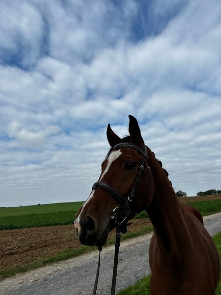 Boom is a 3-year-old gelding who captivates everyone with his friendly nature. Despite his young age, he is absolutely suitable for children and amateur riders. However, his quality and attitude also meet the standards of an ambitious competitive rider. He remains completely calm and well-behaved in all situations, whether hacking out, jumping, or in dressage work.
