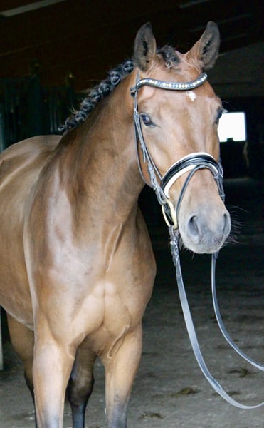 Dieser bildschöne, 4‑jährige braune Wallach besticht durch seinen modernes, typvolles Erscheinungsbild sowie durch seine drei hervorragenden Grundgangarten. Er wurde schonend angeritten und behutsam aufgebaut, sodass er nun bestens vorbereitet ist für seine ersten Einsätze auf Dressurpferde A Niveau. Unter dem Sattel zeigt er sich äußerst fein zu reiten, stets aufmerksam an den Hilfen und mit einer bemerkenswert positiven Arbeitseinstellung. Auch im Gelände präsentiert er sich absolut brav und verlässlich, wodurch er nicht nur sportlich, sondern auch im täglichen Umgang ein echter Partner ist. Ein Nachwuchspferd mit viel Qualität, Charme und Perspektive für die Zukunft.