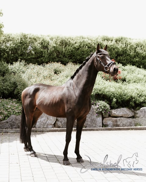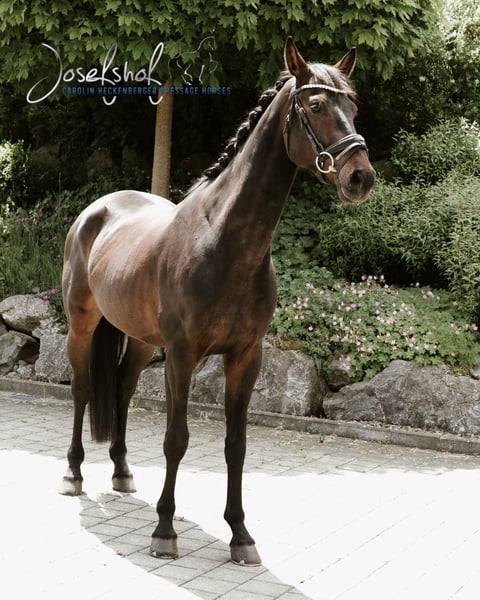 Zum Verkauf steht ein wunderschöner, schwarzbrauner Wallach aus dem Jahr 2020. Mit einem Stockmaß von 168 cm bringt er die idealen Voraussetzungen für den Dressursport mit. Unser Pferd zeichnet sich durch seine ansprechende Bewegungsqualität und seinem starken Charakter aus. Er ist brav im Umgang, gut erzogen und zeigt großes Potenzial. Er eignet sich sowohl für erfahrene Reiter als auch für den ambitionierten Nachwuchs, die Spaß an der Arbeit mit einem talentierten Pferd haben. Er ist bereits mehrfach siegreich in Dressurpferdeprüfungen der Klasse A, mit Noten über 8. Auf dem Turnier ist er super konzentriert, fokussiert, nicht umweltorientiert und ein wahrer Hingucker. Er hat noch nie ein Viereck ohne Platzierung verlassen, man könnte ihn Everybody’s Darling nennen. Bei Interesse oder weiteren Fragen freuen wir uns über eine telefonische Anfrage unter 01605131938