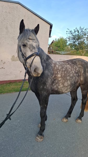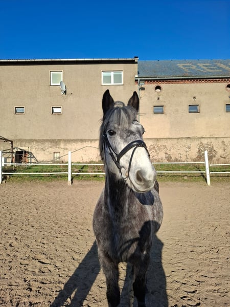 Prinz ist ein 7-jähriger Schimmelwallach, der mit seinem freundlichen und neugierigen Wesen sofort überzeugt. Er ist sensibel, dabei sehr menschenbezogen und möchte seinem Reiter immer gefallen. Prinz ist bis zu Klasse E ausgebildet und beherrscht bereits die Grundlagen der A-Dressur. Auch im Springen zeigt er sich sicher und motiviert. Im Gelände ist Prinz ein zuverlässiger Partner und erkundet seine Umgebung aufmerksam. Durch seine sensible Art braucht er einen Reiter, der ihm Sicherheit gibt. Mit der richtigen Führung ist er auch für Anfänger geeignet und ein tolles Freizeitpferd. Prinz eignet sich besonders für Reiter, die einen liebevollen und lernwilligen Partner sucht, mit dem sie weiter wachsen können. Probereiten ist möglich. Standort ist 01612