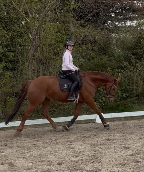 I am looking for a new home for my dressage gelding. He is approximately 16.1 hh, a dream to handle, but due to his age, he is not suitable for beginners when riding. He is sensitive and harmonious to ride, not spooky or nervous, but in unfamiliar situations, he needs reassurance from the rider. - Training level: started with L-level lessons - Gets along very well with mares and geldings - Knows dogs and alpacas - Front shoes, hind hooves barefoot - Familiar with lunging, free jumping, indoor arena, and outdoor riding area - Comes with a nearly new saddle and bridle In the hind legs and when grooming, and in stressful situations, he exhibits symptoms similar to shivering. However, during riding, backing, trailer transport, etc., these symptoms are not noticeable. Therefore, he is offered at a price well below his actual value. This is not an emergency sale, and he is not available to dealers or agents. Not suitable for riding schools, vaulting, or as a weight carrier. He is being rehomed due to professional changes and lack of time.