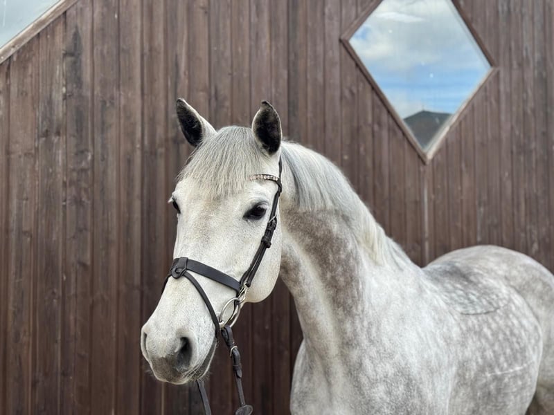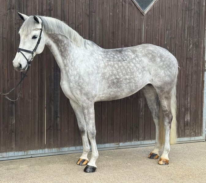 Zum Verkauf steht eine 10jährige, 165cm große, leichtrittige und bildhübsche Holsteiner Schimmelstute von Leovisto (Lauck´s Locke) aus einer Mutter von Cartani. Jacy ist am Turnier im Springen bis 120cm erfolgreich platziert. Nach einer fundierten professionellen Grundausbildung wurde Sie bisher hauptsächlich von einem Amateur geritten. Für unsere gemeinsame Weiterentwicklung arbeiten wir aktuell eng mit einem Berufsreiter zusammen. In der dressurmäßigen Arbeit ist sie sehr leichtrittig und eine echte Musterschülerin, Geländehindernisse hat sie auch bereits kennen gelernt und ist daher ein echter Allrounder. Im täglichen Umgang ist Jacy freundlich und extrem kooperativ, brav beim Schmied, beim Tierarzt und ebenfalls mit Kindern. Sie ist absolut klar im Kopf, unkompliziert im Handling und sehr verträglich mit anderen Pferden. Jacy ist verladefromm und geht alleine in den Hänger. Sie ist geländesicher, sowohl alleine, als auch in der Gruppe. Unter dem Sattel präsentiert sie sich stets arbeitswillig vermittelt ein gutes Gefühl. Ein ideales Pferd für den Amateurbereich oder den ambitionierten Freizeitreiter, der entspannt mit ihr arbeiten möchte und nach getaner Arbeit einfach die Natur genießen will. Es handelt sich um keinen Notverkauf, sie wird schweren Herzens aus zeitlichen Gründen abgegeben, daher Platz vor Preis. Die Stute steht in 48720. Für das Ausprobieren erlauben wir uns eine Aufwandsentschädigung von 50€ zu erheben, welche selbstverständlich beim Kauf verrechnet wird.