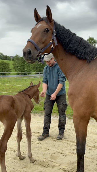 We are offering our main premium mare, Ce la vie, born in 2013. She is by Carrico (Catoki) out of Arpeggio / Francisco I, and was trained in dressage up to level M during her first six years, thanks to her excellent movement dynamics and rideability. Due to a change in her rider and her outstanding pedigree, she was then retired to breeding and has given us five beautiful foals. In the meantime, she was ridden again for a year and also showed talent in show jumping. Currently, she is in foal to Global Dancer, expected to foal around May 12, 2026. Ce la vie is of high rank and possesses a very reliable and honest character. She has been regularly wormed, presented to the farrier, and is loading well. With Ce la vie, all options are open: she is a very loving mother but can also be restarted under saddle and used as a riding horse. The foals from 2024 and 2025 are still in our possession and can be visited on-site. The colt from this year has been approved for the foal championship in Lienen and placed 12th among the jumping-oriented foals. Pocket Rocket MB is also available for purchase. Please feel free to contact me if you are interested.