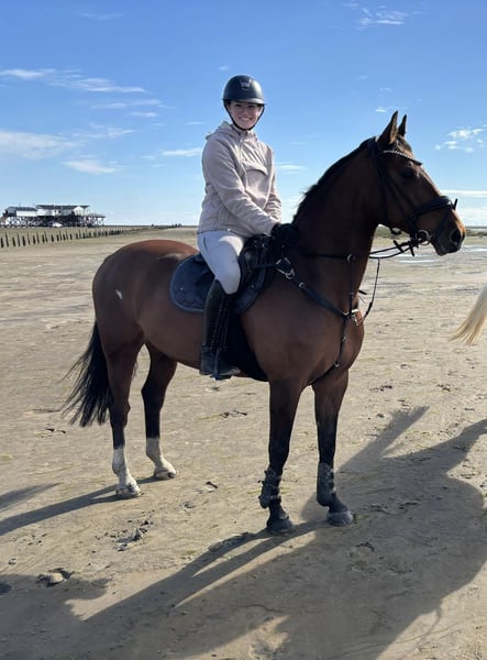 Here is the professional, natural-sounding English translation of the horse listing: --- Hello, It is with a heavy heart that I am offering my 13-year-old mare Liberty for sale, provided everything fits perfectly. She stands approximately 1.60 meters tall. She breeds very well (I am 1.78 meters tall). Libby is a very gentle, relaxed, and sensitive mare with a pleasant forward movement and honest willingness to work. I have been riding her for five years. My trainer and I have trained her up to a secure A-level. Over the past two years, we have competed up to A-class jumping. I also completed my riding license with her. She enjoys both hacking alone and in a group. Currently, she is being trained in dressage. Liberty should no longer be jumping due to a tendon inflammation at the origin of the suspensory ligament, which she developed in summer 2024. In daily handling, Libby is very people-oriented, a bit of a character, and always eager to please. Overall, she is very straightforward to handle. Under saddle, she is quite sensitive. Therefore, she is not suitable for beginners but requires a confident, calm, and patient rider who is empathetic and enjoys working with a sensitive horse. She responds very well to aids and voice commands. Riding her is truly a pleasure. At first, Liberty may test new riders, but this usually passes within three to four minutes. She has never bucked or reared seriously. Libby prefers to travel in transporters or similar trailers that offer more space. We have never had any loading issues. She is particularly suitable for confident riders who enjoy leisure riding and hacking or groundwork. Currently, Libby is turned out outside during the day and stabled at night, but she is also familiar with open stable management. She is a light-eating horse. A pre-purchase veterinary examination (AKU) can be arranged at the buyer’s expense. Libby is not a desperate sale! She will only be placed in the best hands! If you are genuinely interested and her profile has caught your attention, I would be very happy to receive a detailed message from you. Priority goes to the right home over price! ❤️ Feel free to contact me at: 0157 5582 4464 Warm regards, Libby and Ella