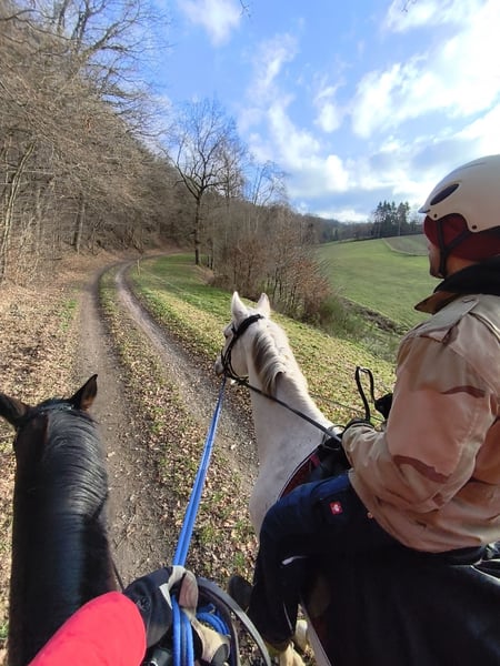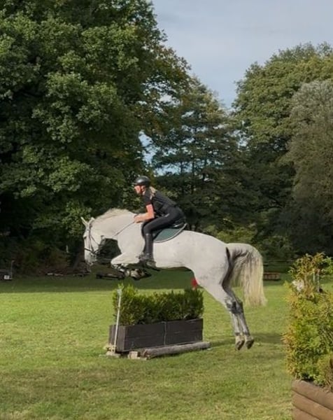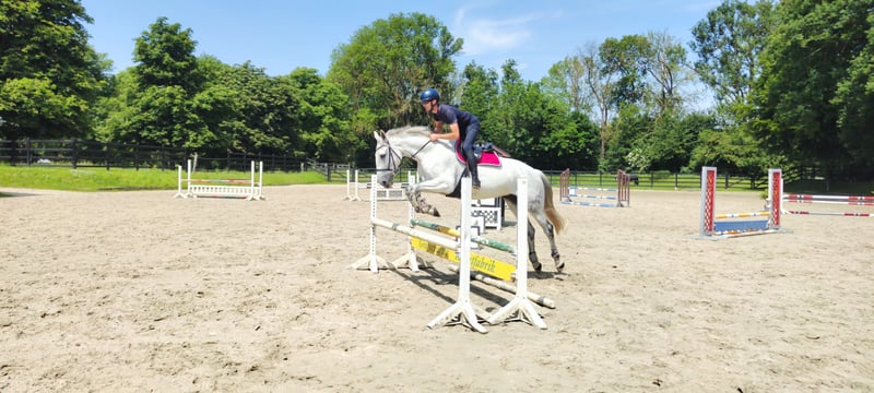 Due to lack of time, this dream mare is being offered for sale. Lou is an extremely balanced horse. A reliable horse that can stand still and remains calm, yet is never sluggish or lazy. She has very well-balanced, comfortable gaits. Her passion is jumping; she targets the jump, and the rest is done by Lou herself, forgiving rider mistakes (a self-starter). She is cautious but also has enough courage (jumps over everything without hesitation, perfect for eventing!) and has the right attitude towards jumping. A horse that always wants to do everything right and thinks along. Therefore, she brings everything one desires for higher-level sports. Lou has no vices and can be ridden by teenagers and children. At the ideal age of 13 years and her level of training, she is perfect for a good-riding amateur and for beginner jumpers. In the past, she has also competed in tournaments and can certainly start the season directly with the new owner. She is absolutely unspoiled and is now just being developed. In jumping, she is currently trained safely up to the L class, with individual M jumps tested, and she shows a lot of potential for further advancement – with increasing strength, moving up to higher classes will be effortless in the coming weeks. She also shows talent in dressage and is currently being professionally trained at L level. Both disciplines are supported by experienced trainers, which optimally aids her development. She is also completely safe on trails and goes out alone as well as in groups. Even on a halter or as a lead horse, she has previously participated in hunts, during carnivals, etc. She has never been sick with me. X-rays of her neck and back were taken without findings. A new vet check can be done at the buyer's expense. She has very good hooves (barefoot, but had shoes in the past) and stands well on her legs. She is regularly vaccinated, dewormed, and has just been to the farrier. Her teeth were done by the dentist in January, and she has been checked by an osteopath for sale. She is familiar with open stable housing but prefers a box with plenty of turnout, as she is very low in rank. Due to her height of approximately 1.74m, she is also ideal for men. Anyone interested in getting to know this talented dream mare or has further questions is welcome to contact me. I am happy to send additional videos of her along with a description of her new home. Viewings are possible by arrangement, with a fee of €30 for trial rides as compensation for the riding tourism. This is not a forced sale and will only be given to a suitable, appreciative home. Private sale!