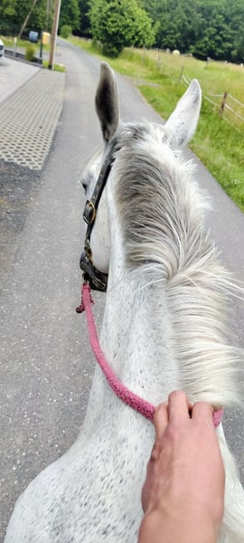 Aufgrund von Zeitmangel in passendes Zuhause. Lou ist ein überaus ausgeglichenes Pferd, welches durchaus auch mal Tage stehen kann und trotzdem brav ist aber nie träge. Sie hat sehr gut ausbalancierte, bequeme Gangarten. Ihre Leidenschaft ist das springen, man könnte sie vermutlich auch mit Halsring durch den Parcours reiten. Sie geht aber auch sehr gerne ins Gelände. Sie ist Geländesicher und geht alleine sowie in der Gruppe ins Gelände. Sogar am Halfter oder als Handpferd und ist früher Jagden mitgegangen und auch im Karneval oder an St. Martin. Lou lässt sich auch von Jugendlichen und Kindern oder Anfängern reiten. Sie war bei mir nie krank. Ich habe vom Kauf noch die Röntgenbilder von Hals und Rücken ohne Befund. Ein neuer Tüv kann gerne gemacht werden auf Kosten des Käufers. Sie hat sehr gute, korrekt gestellte Hufe und Beine (Barhuf, hatte aber früher Eisen). Reg. geimpft, entwurmt und beim Schmied. Sie kennt Offenstallhaltung, bevorzugt aber Box mit viel Weidegang. Wer noch weitere Fragen hat, darf sich gerne melden. Mit Beschreibung vom neuen Zuhause können wir auch gerne telefonieren oder eine Besichtigungen vereinbaren. Gegen Reittourismus und als Aufwandsentschädigung 25€ fürs Probereiten. Es ist kein Notverkauf und wird nur in ein passendes, wertschätzendes Zuhause abgegeben. NICHT ZUR VERFÜGUNG oder als Schulpferd oder an Reitanfänger
