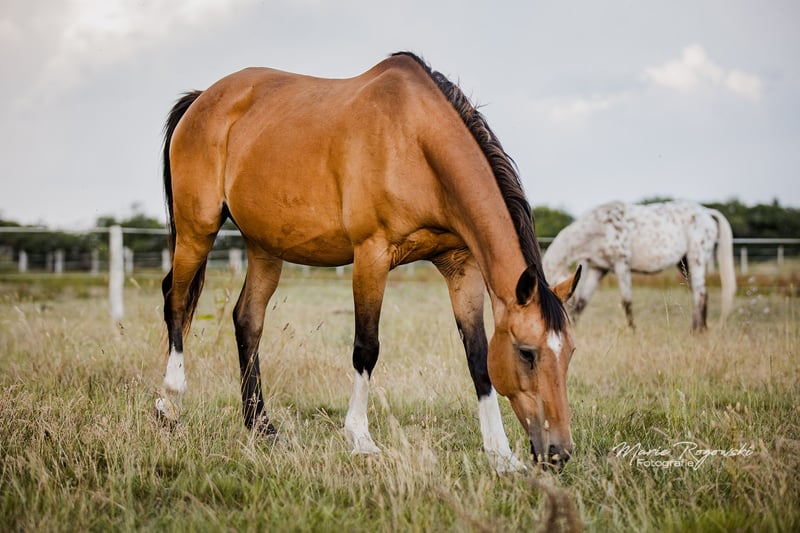 Deutsches Reitpferd | Buckskin | 2011 | 158 cm Farbgenetik: E/x A/x Cr/n MELISANDE GF ist eine ausdrucksstarke, sportlich gebaute Stute mit sehr guten Grundgangarten. Sie ist eine bewährte Mutterstute mit überzeugender Nachzucht - ihre buckskinfarbene Tochter aus 2020 steht ebenfalls zum Verkauf. Väterlicherseits stammt sie ab vom Hannoveraner Hengst Laurencio, mütterlicherseits von Marigold GF, einer Stute aus dem Zuchtprogramm des Gestüts Falkenhorst.