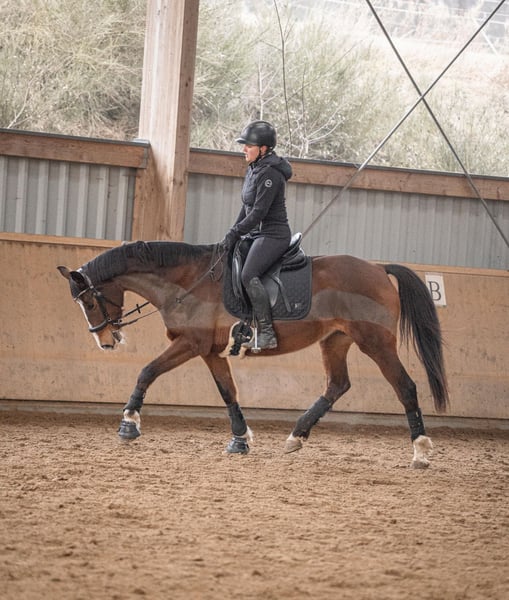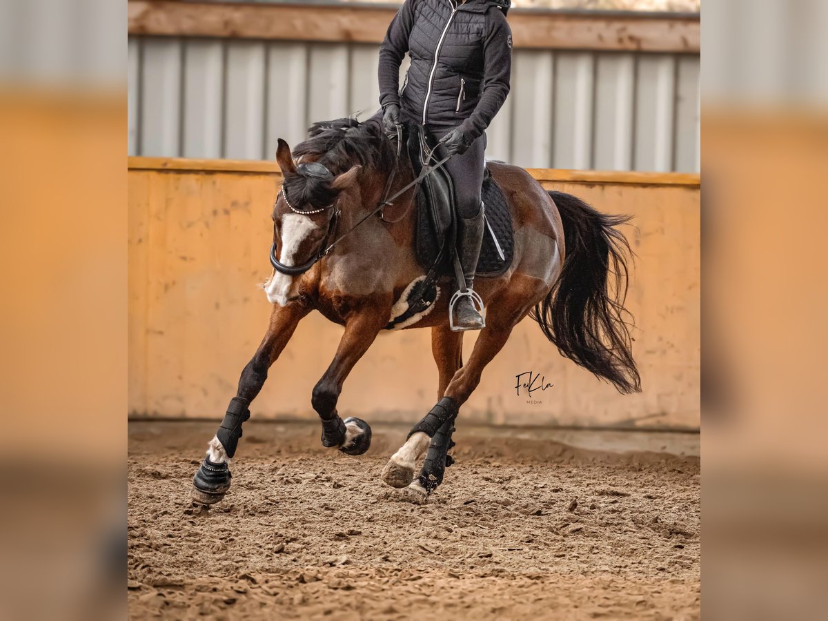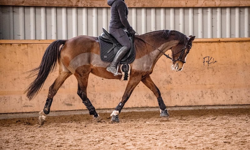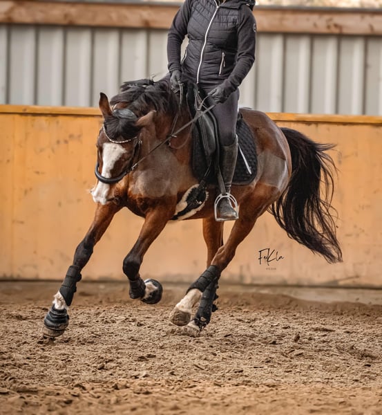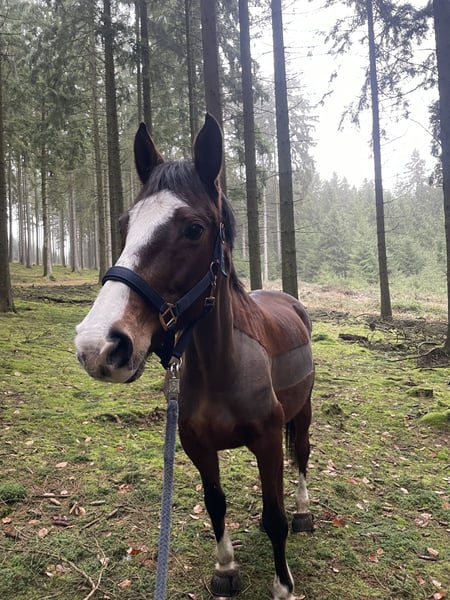 I am currently looking for a new, loving home for Peaches. Due to personal reasons, I have to part with her, which I do with a heavy heart. Peaches was born on April 12, 2011, and is a small German riding horse. She consistently shows herself to be diligent, easy to ride, and motivated. She has a good forward movement, learns new things quickly, and possesses beautiful basic gaits. I have primarily ridden her for leisure—dressage, pole work, and hacking. Whether alone or in a group, she behaves well in all situations. She has a lot of energy and therefore needs a confident rider with a gentle hand, but she remains manageable at all times. She is simply fun to ride. Sometimes she can be a typical mare and may be a bit moody—she shows clearly what she wants or doesn’t want. She doesn’t particularly enjoy being tacked up, but she handles everything else, such as the farrier, bravely. She is a spirited horse that enjoys working and being active. Currently, she is shod, as the terrain and facilities are quite stony. She is presently in an active stable. However, I could also imagine her in a smaller herd or with a box at night and turnout during the day. Her teeth were checked in January. She has been regularly dewormed. If you are interested in Peaches, please feel free to contact me via WhatsApp at 0178 4148675. Saddle, bridle, and accessories such as blankets are included in the price. We look forward to hearing from you.