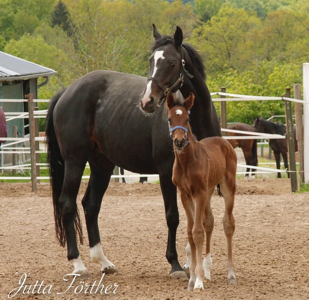 A causa di una riduzione del nostro allevamento, cerchiamo per la nostra esperta fattrice un nuovo posto amorevole. Dancina è entrata a far parte della nostra scuderia circa 10 anni fa e da allora ha dato alla luce alcuni bellissimi puledri con molta qualità di movimento. Purtroppo, una congiuntivite periodica, che non è ereditaria, ha portato a una cecità unilaterale. Ha trovato la sua vocazione come fattrice. Non ci sono segni di limitazione. Dancina è una madre estremamente premurosa, durante i suoi parti e nella crescita dei puledri non ci sono mai stati complicazioni. È tranquilla durante il trasporto e dal maniscalco e si comporta sempre bene nel maneggiarla. Attualmente è gravida di Be My Dancer. Tuttavia, a causa della prossima nascita, il trasferimento potrà avvenire solo dopo lo svezzamento del puledro. Un acquisto incluso il puledro sarebbe possibile dopo un dettagliato accordo. Possiamo immaginare Dancina anche come cavallo da compagnia e per la famiglia. Ama l'attenzione e le coccole e sviluppa una forte fedeltà verso la sua persona di riferimento, non appena ha preso fiducia. Nella mandria è molto compatibile. Attualmente vive durante il giorno con circa 10 altre fattrici e di notte sta in box. Alcuni dei suoi puledri sono ancora nella struttura e possono essere visionati su richiesta. ------------------------------- Tutti i nostri cavalli in vendita sono regolarmente vaccinati e sverminati. Anche un trattamento dentale di routine annuale è parte dei nostri standard. Per ulteriori dettagli e domande sui cavalli in vendita, vi preghiamo di contattarci telefonicamente dal lunedì al venerdì dalle 9 alle 18. I messaggi tramite ehorse verranno risposti solo in parte.