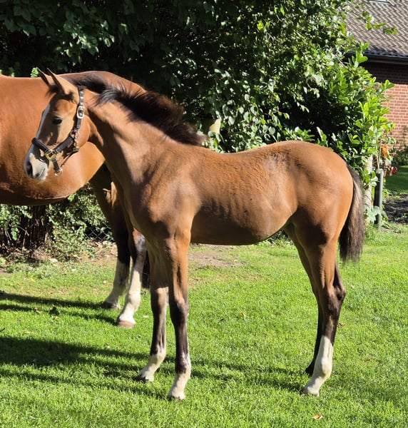 *** Bella Lotti *** For Sale A talented mare born in May 2025 is available for purchase. Standing at 16.1 hh, she makes an impressive impression and is well-suited for show jumping. She is equipped with beautiful conformation and will also excel in the dressage arena. This mare impresses with her lovable and open-minded character, making her an ideal partner for sport and leisure riding. If you are looking for a promising horse that can shine both in training and competition, this mare is the perfect choice for you! Please feel free to contact me for further information or to arrange a viewing. Visits are possible by appointment.