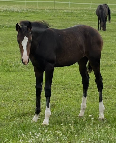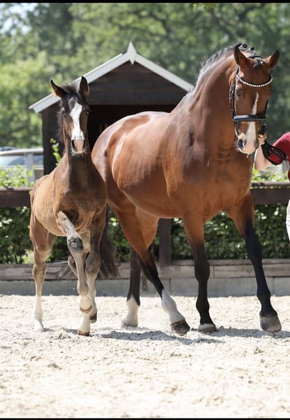 I am offering my beautiful filly for sale, who descends from SKY, the current national champion of the 7-year-old dressage horses. Since I have decided to keep the dam, I am looking for a new, 5-star home for her from the end of October. **Damline**: Her great-great-grandmother is the renowned Puppenfee, who has produced stallions such as San Amour I and San Amour II, as well as several premium mares and granddaughters. With this impressive pedigree and her charming personality, she has the potential for a successful career in dressage. I look forward to finding a loving and nurturing home for her. Please feel free to contact me if you are interested or have any questions.