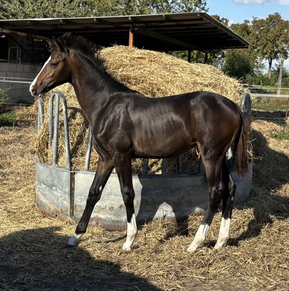 Ich biete mein wunderschönes Stutfohlen zum Verkauf an, das vom aktuellen Bundeschampion der 7-jährigen Dressurpferde, SKY, abstammt. Da ich mich entschieden habe, die Mutterstute zu behalten, suche ich ab Ende Oktober ein neues, 5-Sterne Zuhause. **Mütterliche Abstammung**: Sie hat als Ur-Ur-Großmutter die renommierte Puppenfee im Pedigree, die Hengste wie San Amour 1 und San Amour 2 sowie einige prämierte Töchter und Enkeltöchter hervorgebracht hat. Mit dieser beeindruckenden Abstammung und ihrer charmanten Persönlichkeit hat sie das Potenzial für eine erfolgreiche Karriere im Dressursport. Ich freue mich darauf, ein liebevolles und förderndes Zuhause für sie zu finden. Bei Interesse oder Fragen stehe ich gerne zur Verfügung