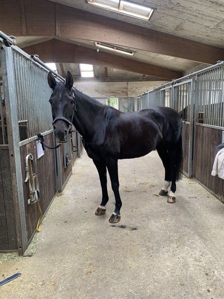 For Sale: German Riding Mare We are offering an elegant, dark bay riding mare born in 2006, standing at 16.2 hh. She is a true talent for show jumping and impresses with her solid training, friendly nature, and willingness to always give her best. She has been regularly vaccinated. She has competed up to class L but is now primarily used as a reliable leisure companion. She is also confident in the terrain. We are looking for a caring home where she can serve as an experienced leisure partner, with occasional opportunities to enjoy jumping. Her somewhat advanced age should not be a concern; she still has plenty of energy and enthusiasm for movement. If you are interested or would like more information, please feel free to contact me. Viewings and trial rides are possible by arrangement. Please contact me to learn more.