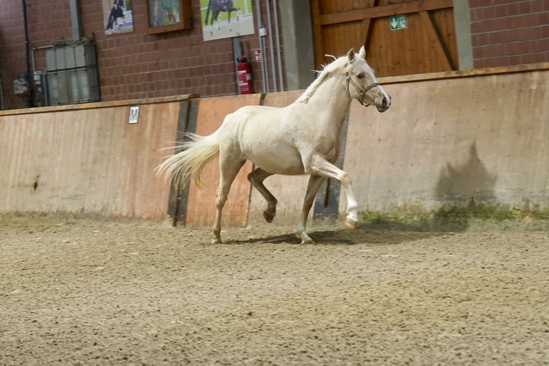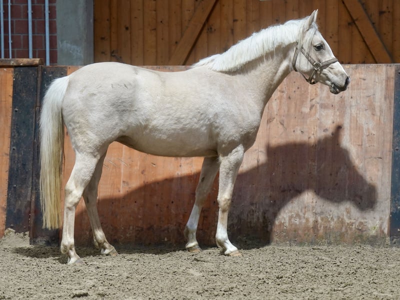 For sale is a promising German riding mare, born in 2023. This elegant Palomino mare impresses with her attractive appearance and her potential in dressage. With a height of 146 cm, she is perfectly proportioned and already displays a harmonious basic posture. She is a genuine young talent, a jewel for sport or breeding. The young mare has a solid foundation that promises a successful career in the dressage arena. Thanks to her good lineage and balanced temperament, she is of interest to both ambitious riders and breeders. She is healthy, well cared for, and ready to transfer into loving hands to support her further development. A true highlight for anyone seeking a young, promising dressage pony. Please feel free to contact me for more information or to arrange a viewing.