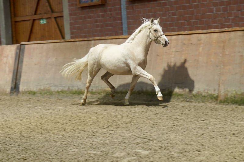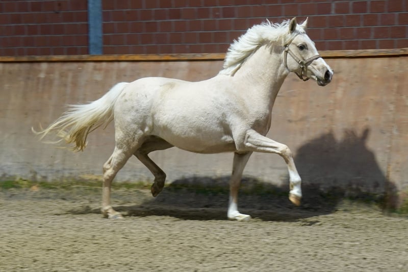 Zum Verkauf steht eine vielversprechende deutsche Reitpferdestute, geboren im Jahr 2023. Diese elegante Palomino-Stute besticht durch ihre ansprechende Erscheinung und ihr vielversprechendes Potenzial im Dressursport. Mit einem Stockmaß von 146 cm ist sie perfekt proportioniert und zeigt bereits jetzt eine harmonische Grundhaltung. Sie ist ein echtes Nachwuchstalent, ein Juwel für Sport oder Zucht.Die junge Stute verfügt über eine solide Basis, die eine vielversprechende Karriere im Dressurviereck verspricht. Aufgrund ihrer guten Abstammung und ihres ausgeglichenen Charakters ist sie sowohl für ambitionierte Reiter als auch für Züchter interessant. Sie ist gesund, gut gepflegt und bereit, in eine liebevolle Hand zu wechseln, um ihre weitere Entwicklung zu fördern. Ein echtes Highlight für alle, die nach einem jungen, vielversprechenden Dressurpony suchen. Bei Interesse stehe ich gerne für weitere Informationen und eine Besichtigung zur Verfügung.