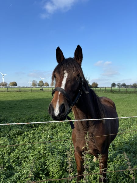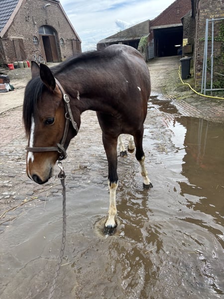 Hier bied ik mijn prachtige tweejarige, momenteel 1,52 m grote vosmerrie te koop aan. Ik heb haar als jaarling samen met haar halfzus gekocht, zodat ze samen konden opgroeien. Eerlijk gezegd kon ik me destijds niet entscheiden en wilde ik gewoon dat de twee bij elkaar bleven. Nu heb ik echter besloten haar halfzus te houden, omdat de klik tussen ons gewoon beter is. Ariel is helemaal onbevreesd en heeft al veel meegemaakt. Ze kent trekkers, kinderen en gaat ook door water. Ze heeft ook al geweldig het trailertraining doorstaan en gaat zonder problemen erop. Ze is van jongs af aan gewend aan mensen, loopt probleemloos aan het halster en kent het om op de piste te lopen. De eerste longeerproeven gaan ook goed. Als je op zoek bent naar een echte eye-catcher om zelf op te leiden, is dit veelzijdige merrie precies wat je zoekt. Haar vader is de welvarende ponyhengst Jacky Boy. Aan moederskant worden haar afstamming gesierd door Gribaldi en Florestan. Bij vragen sta ik graag voor je klaar.