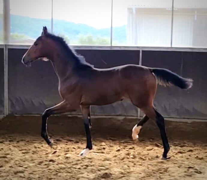 Tolle Möglichkeit aus privater kleinen liebevollen Züchterhand. Wir bieten hier eine 3 jährige braune Stute aus 2023 an, die derzeit noch in der Entwicklung steht. Altersentsprechend roh. Derzeit hat sie ein Stockmaß von ca. 1,70m und besticht durch sehr gute Grundgangarten und aktiver Hinterhand. Unerschrocken wird Sie derzeit an alles gewöhnt, wie z.B. Trense, Longe Gamaschen, das kleine 1x1, und zeigt sich dabei stets lernbereit und umgänglich. Ideal für einen Reiter, der sich ein junges Pferd nach eigenen Vorstellungen ausbilden möchte. Abstammung Fünf Sterne Royal x Don Index Aktueller TÜV ohne Befund vorhanden Bei ernsthaften Interesse stehe ich Ihnen gerne telefonisch unter 016096034263 für weitere Informationen und eine Besichtigung zur Verfügung.