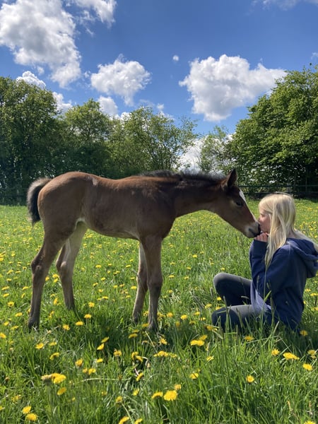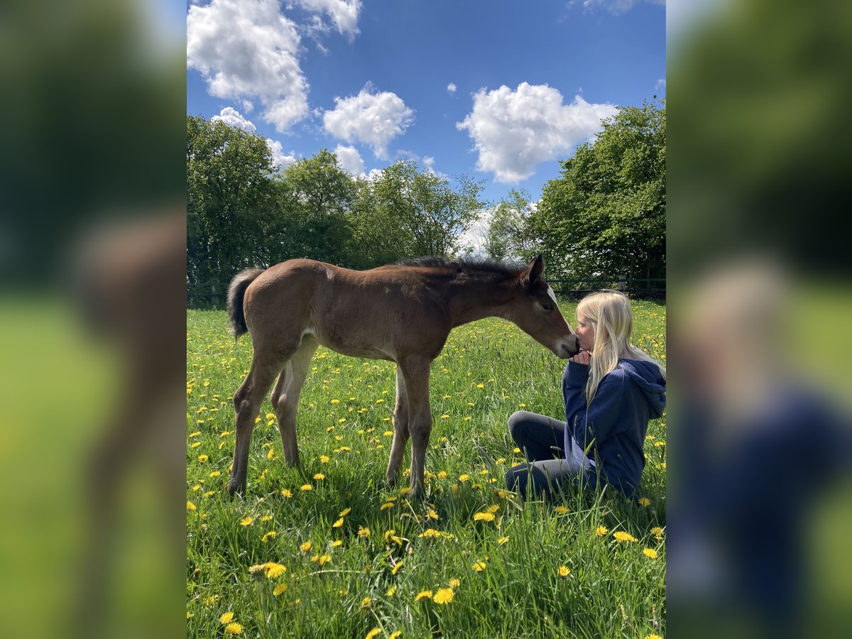 We are reducing our horse herd and are offering a typical 4.5-year-old mare. She suffered an injury at the age of three (which is why she is being sold at a lower price), and as a result, her training progress is somewhat behind. However, she is very eager to learn and highly motivated. Her sire, Gentleman, was a two-time Bundeschampion in the young horse category under Sandra Auffahrt. The dam also competed at the Bundeschampionat. We would be delighted if this lovely mare could find a caring and supportive new home. She was born and raised with us.
