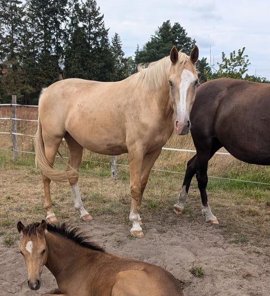 4 year old Palomino mare, German horse. Aurora is currently 1.69m tall and still growing. She has one blue eye and one brown eye and is not only an eye-catcher in terms of color. She is currently being lunged and will then be broken in. Awarded as a suckling foal. Video of free running can be sent. Sire: Magician GF (VV Mascarpones Erbe) MV: Abanos MMV: Weltenadel.