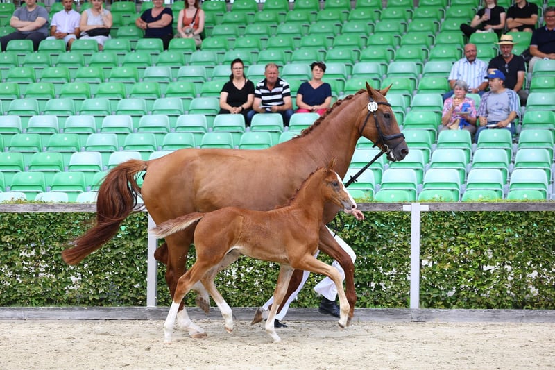 Bewegingssterke kleurrijke hengst kandidaat. Reservekampioen bij het veulenkampioenschap in Moritzburg. Volgens de beoordeling van de jury is het een typvol hengstveulen met een sportieve uitstraling en een maskuline typologie, met een goede driehoek en een zeer goede fundering. Vooral de bewegingsgang in de galop wordt gekenmerkt door veel kracht en oprichting. Geb. 05/24 Informatie over de moederlijn: Afstammelingen uit de directe moederlijn zijn internationaal succesvol tot 1.50m in de springsport. De zus van de moeder heeft de winnares van het 18e Saksisch-Thüringse vrijspringen kampioenschap in 2021 voortgebracht.