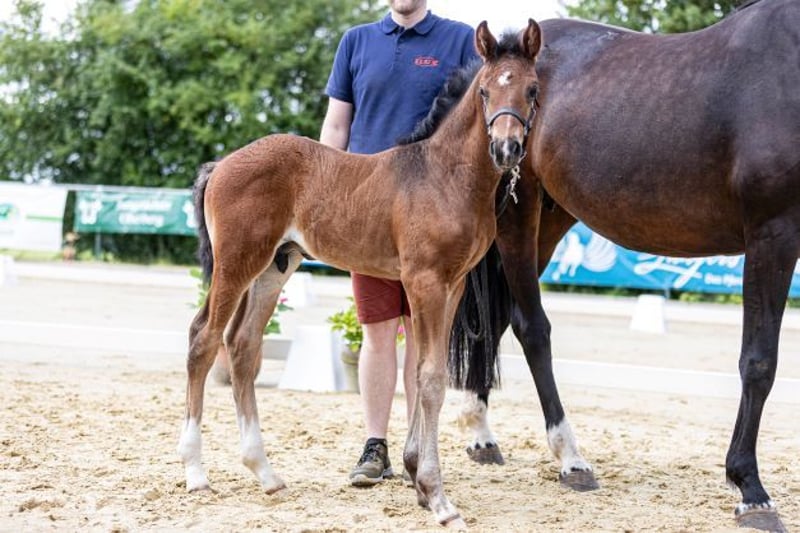 Toller Charakter hat der Kleine, tolle Grundgangarten, besonders Schritt und Trab zeigt er sich besonders talentiert. Hinterhand schon toll ausgeprägt und absolut typvoll.