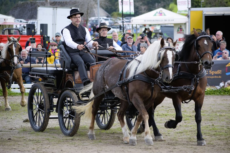 Roberta of Dagobert from Rohana of Wildschütz will turn 5 years old in February 2026. She currently measures 14.9 hands and was registered in the studbook this year. Roberta was born here and has grown up in our herd in a paddock environment. Our Roberta is a friendly, charming, and elegant mare. She was started under saddle this spring and successfully completed her driving aptitude test with a score of 7.4 in September. Her positive driving qualities were especially confirmed by an external driver, who rated her an 8.5. She has been driven reliably in both single and pair harness and has demonstrated her courage and dependability during relocations and show preparations. She is primarily ridden in the terrain in all three basic gaits, and she always behaves well in this setting as well. We can imagine Roberta as a wonderful family and leisure horse.