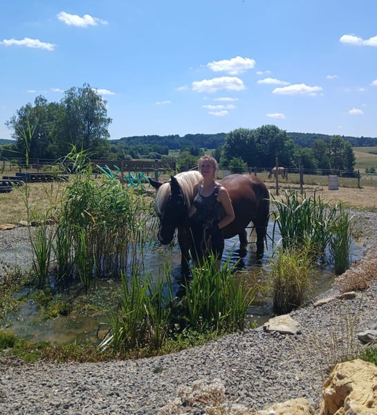 À vendre, notre jument de performance et de race pure Josie, fille de Milan (par Maitanz) × Montan. Côté maternel, elle descend de la jument d'élite Diana, par Direkt. Josie, née en avril 2020, mesure environ 1,55 m au garrot. C'est une jument très proche de l'humain, affectueuse, volontaire au travail et enthousiaste à l'idée de courir. Lors de sa performance de 2023 à Marbach, elle a obtenu une note finale de 8,45, ce qui lui a permis de se classer en première place des juments de la race Schwarzwälder. Elle a été conduite en voiture et montée, avec de belles allures. Elle a déjà eu un poulain sain et pourra être rebouchée en 2026. Elle montre également beaucoup de potentiel sous la selle, bien que le temps pour la développer davantage lui manque encore. Elle connaît aussi les bases du travail à pied et a participé à un stage de trail en 2025. Elle est régulièrement vaccinée, vermifugée et ses dents ont été traitées. Test PSSM négatif (n/n). Vendue uniquement à des mains expertes. Ce n’est pas un cheval pour débutants. Pour toute question, n’hésitez pas à nous contacter par téléphone au 0151-70130244. Il s’agit d’une vente privée, sans garantie ni retour.