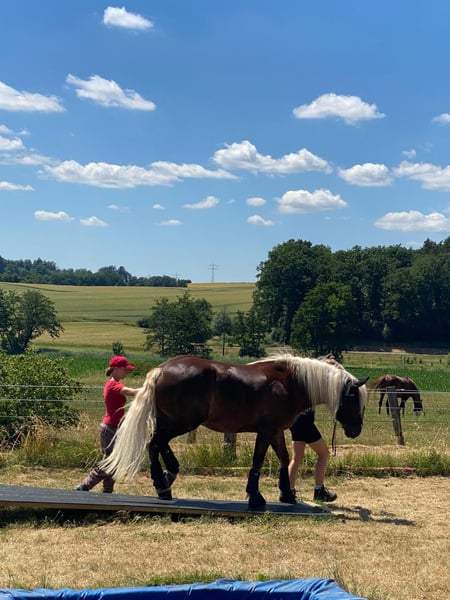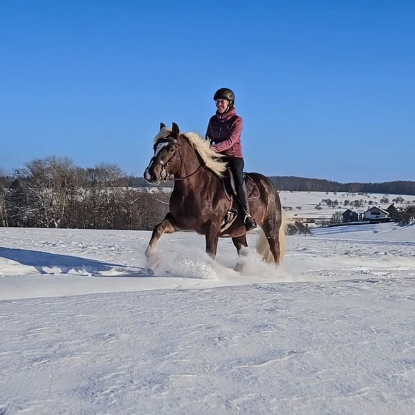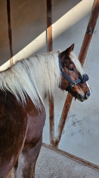 Zum Verkauf steht unsere Leistungs- und Staatsprämienstute Josie von Milan (v. Maitanz) × Montan. Mütterlichseits geht sie auf die Elitestute Diana von Direkt zurück. Josie wird 6 jährig (*April 2020) und hat ein Stockmaß von 1,55 m. Sie ist eine dem Menschen sehr zugewandte verschmuste, arbeitswillige und lauffreudige Stute. Bei ihrer Leistungsprüfung 2023 in Marbach konnte sie sich mit einer Endnote von 8.45 auf Platz 1 der Schwarzwälder Stuten setzen. Sie ist gefahren und geritten, mit schönen GGA. Sie hatte bereits ein gesundes Fohlen und kann 2026 wieder gedeckt werden. Viel Potenzial zeigt sie auch unter dem Sattel, allerdings fehlt hier die Zeit sie mehr zu fördern. Auch kennt sie die Grundlagen der Bodenarbeit und war 2025 auf einem Trailkurs. Sie ist regelmäßig geimpft, entwurmt und die Zähne sind gemacht. PSSM frei (n/n). Nur in beste Hände abzugeben. Kein Anfängerpferd. Bei weiteren Fragen stehen wir gerne telefonisch unter 0151-70130244 zur Verfügung. Es handelt sich um einen Privatverkauf, ohne Gewähr und Rückgabe.
