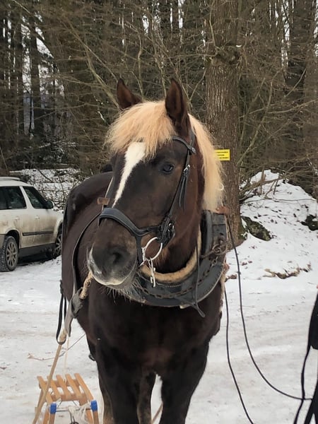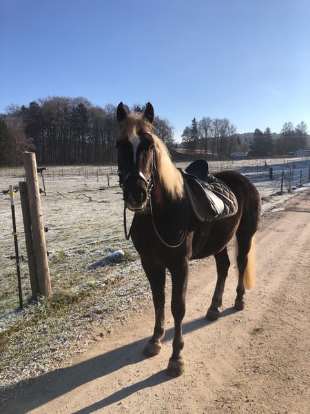 Zum Verkauf steht eine sehr typvolle, freundliche und fleißige Schwarzwälder Fuchs Stute, geboren im April 2017, aus tollen Linien gezogen und einem Stockmaß von ca. 1,52 m. Die Stute ist geritten und gefahren. Sie geht alleine und in der Gruppe ins Gelände und ist dabei stets klar im Kopf. Dennoch ist Sie kein Anfängerpferd, sie braucht einen erfahrenen Reiter, der auch Ihr in manch unsicheren Momenten halt gibt. Wer Ihr dies bieten kann, mit dem geht Sie durchs Feuer. Die Stute hat „Go“, ist also keine Schlaftablette, Sie geht fleißig voran ist dabei aber stets händelbar und klar im Kopf. Sie ist durch Ihre Abstammung auch als Zuchtstute bestens geeignet, Bilder der bisherigen Fohlen können gerne auf Nachfrage gezeigt werden. Die Stute befindet ist im professionellen Beritt, dort findet ein erheblicher Anteil des Trainings im Gelände statt. Ganz viel bergauf und bergab Training. Gelassen übers Stoppelfeld, Landwirtschaftliche Maschinen, Alpakas, Laubbläser, kleine Sprünge, mit Ihr Schlitten fahren, alles kein Problem. Wer Videos vom Training sehen möchte, bitte einfach melden. Sie kann aber auch jederzeit vor Ort im Training besucht werden. Wer einen fleißigen Freizeitpartner sucht ist hier goldrichtig. Eine sehr liebevolle, aufmerksame Stute, die mit dem passenden Menschen durchs Feuer geht. Einsatzbereiche: Fahren, Freizeit, Dressur, Gelände und Wanderritte. Der Preis steigt mit fortschreitender Ausbildung weiter an. Bei Interesse freuen wir uns über eine persönliche Nachricht.