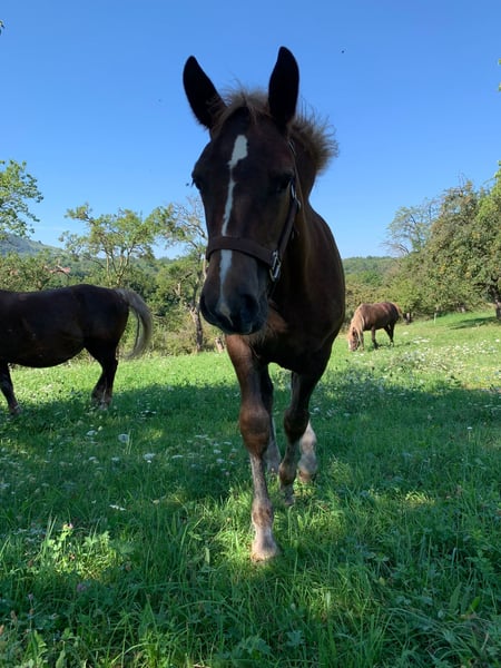 Schwarzwälder Stutfohlen Resi Unsere liebe Resi sucht ab November 25 ein neues Zuhause. Sie ist sehr brav im Umgang, war noch nie krank und ist dementsprechend gut entwickelt. Wir erleben Resi jeden Tag als ausgeglichenes, unaufgeregtes, aber dennoch neugieriges und aufgeschlossenes Fohlen. Sie ist am 17.4.25 geboren. Mutter: Staatsprämienstute Ranja Vater: Finn RN Sie ist bereits gechipt und hat einen Pferdepass mit vollständiger Abstammung. Resi wächst bei uns auf dem Hof, mitten im Geschehen, auf. Sie kennt die Geräusche verschiedenster Landmaschinen und ist täglich zahlreiche Besucher gewohnt. Sie wächst gemeinsam mit ihrer Mutter und ihrer Vollschwester auf. Sie dürfen täglich auf die Weide und haben einem Stall mit großem Padock Auslauf. Ihre Mutter Ranja ist eine rassetypische und überalle Maßen zuverlässige Stute, die nicht nur unter dem Sattel oder vor der Kutsche alles gibt – sie kennt sogar noch Pflug und Feldarbeit. Der Vater unserer kleinen Resi ist Finn – ein wunderschöner Hengst, der nicht nur mit seinem äußeren Erscheinungsbild beeindruckt, sondern auch durch seine souveräne und gelassene Art. Diese Qualitäten durfte er schon mehrfach unter Beweis stellen. Finn ist sogar aus eigener Familienzucht. Wir haben aktuell zwei trächtige Stuten am Hof und möchten/müssen den Bestand aus arbeitswirtschafltichen und personellen Gründen wieder etwas verkleinern. Deshalb suchen wir für Resi einen liebevollen Heimathafen, in dem sie glücklich aufwachsen darf und später ihr volles Potential entfalten kann. Wir freuen uns auf ehrliche Anfragen und können gerne einen Besichtigungstermin für ein erstes kennenlernen vereinbaren.