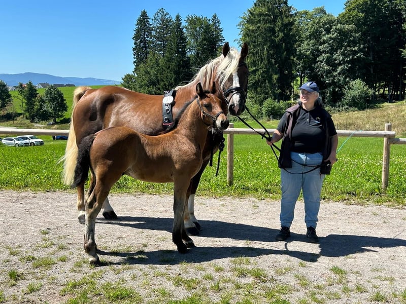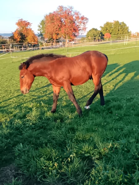 Ramazzotti ist ein super schickes Fohlen von Rasputin mit der seltenen braunen Farbe. Ramazzotti ist bei der Fohlenschau in Sankt Märgen mit Elitesilber ausgezeichnet worden . Er bekam mit 33 Punkte und in der Bewegung bekam er 9 Punkte. Er beherrscht das Fohlen ABC und ist einfach ein super Bursche. Ramazzotti ist am 27 Mai geboren und wird deshalb jetzt erst abgesetzt. Er ist im Herrenverband aufgewachsen . Seine Mutter hat ein Stockmaß von 156 und seine Schwester von 2024 ist auch schon sehr groß. Nähere Infos bei Andrea Schuster-Koch