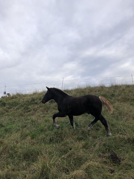 Pouliche gelding de couleur chestnut foncé, issue de Vinzent et de la jument gagnante Elli (exposition nationale de Marbach 2022). Très expressive en mouvement, avec une démarche correcte et doté d’un caractère exceptionnel. Volker connaît parfaitement le langage des jeunes chevaux, il est bien élevé en main et se montre très sociable avec les humains.
