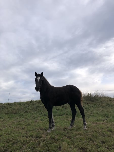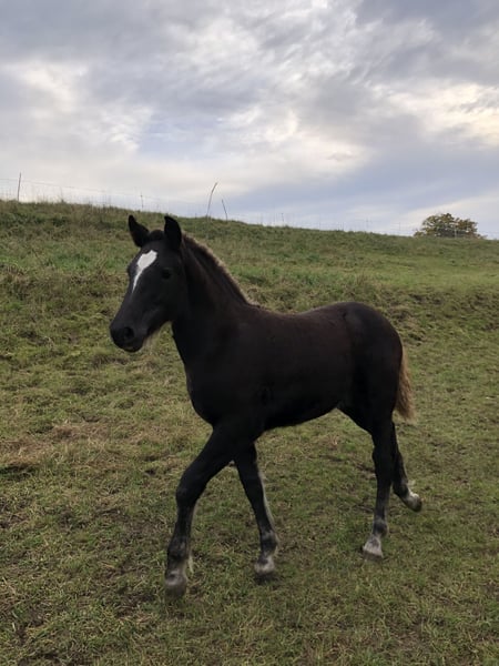 Powerful dark chestnut colt by Vinzent out of the winning mare Elli (Marbach State Show 2022). Well-movemented, correct conformation with excellent temperament. Volker is familiar with foal handling, is well-behaved and very personable.