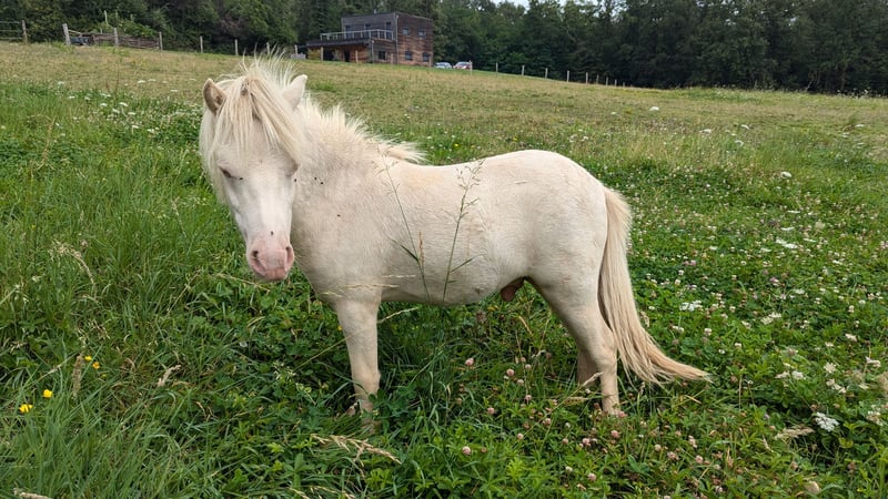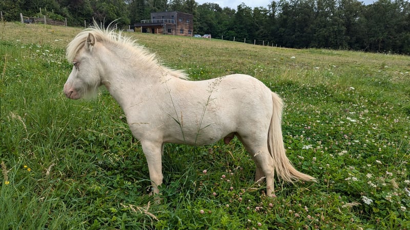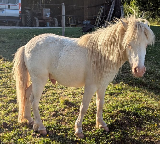 Namasté is a full paper AMHA miniature horse. He was gelded in January 2025 and has been living in a herd outdoors year-round since birth. Miniature horses are very people-oriented, intelligent, and versatile. You are welcome to visit him on site at any time.