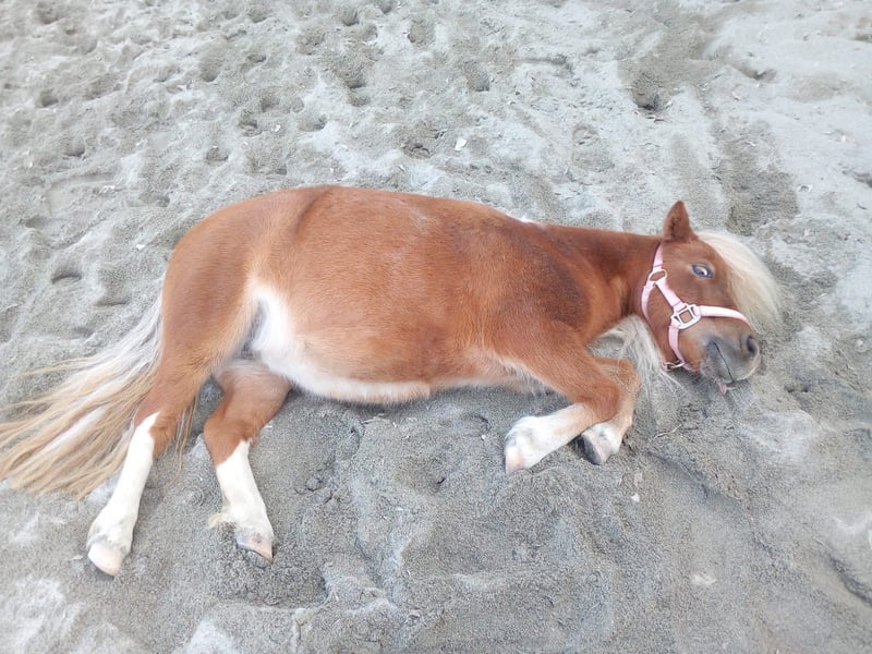 Wir suchen ein liebevolles und aufmerksames neues Zuhause für unsere entzückende Mini-Shetty-/American-Miniature-Horse-Stute. Sunshine ist ein Fuchs, geboren am 24.06.2012, und 70 cm hoch. Sie liebt es, mit Kindern zusammen zu sein, geht gerne spazieren und hat Freude an Bodenarbeit sowie am Springen. Sie sollte mit anderen Pferden gehalten werden, die ungefähr ihre Grösse haben, und ist ansonsten völlig unkompliziert. Sunshine hat einen sehr fröhlichen, zielstrebigen und offenen Charakter und lernt schnell. Ausserdem kann sie einige Tricks. Sie braucht jemanden, der viel Zeit mit ihr verbringen kann, und belohnt ihre Besitzer dafür mit viel Zuneigung und Freude. Sie ist sehr verträglich mit anderen Pferden und lebt schon ihr ganzes Leben in einem Offenstall.