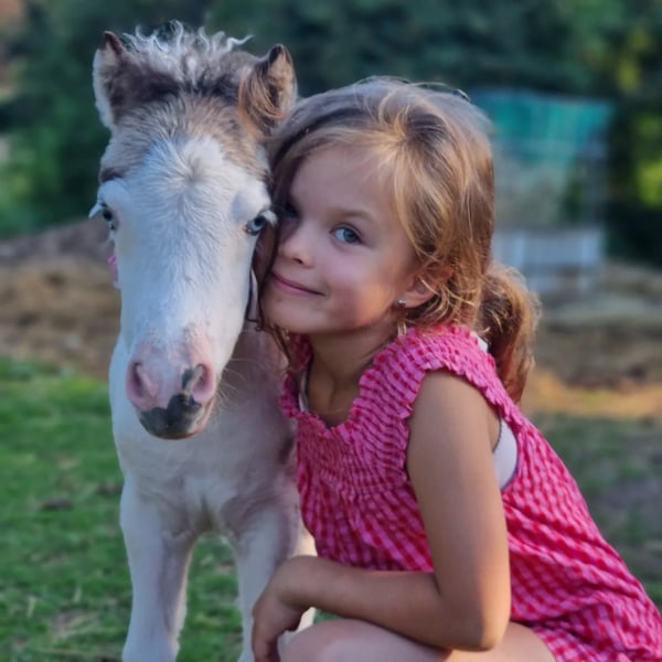 Si tout se passe bien, nous envisagerions de nous séparer de notre jolie Sunna. Sunna est née en juin 2025. Sa mère est Wesersteins Spirit of Maja (photo avant-dernière), et son père est l’étalon importé des États-Unis, Circle S Painted Vegas (dernière photo). Sunna est une jument buckskin tovero avec deux yeux bleus éclatants. La répartition de ses taches doit encore être confirmée par un test de couleur, sa mère portant le gène Tobiano et le gène Splashed White, tandis que son père possède le gène Tobiano et le gène Overo (LWO+). Sunna elle-même est presque entièrement blanche, à l’exception de sa tête mediolateral et d’une petite tache sur le côté. Elle a hérité du gène crème de sa mère et arbore la magnifique couleur buckskin. Une véritable bombe de couleur, et en plus très gaitée, ce qu’elle a également hérité de sa lignée maternelle. N’ayant pas prévu de la garder à l’origine, nous serions prêts à la céder si le bon nouveau propriétaire se présente… Sinon, elle restera avec nous pour le moment. Sur le plan du caractère, elle est très proche des humains et connaît tout ce qu’un poulain de son âge devrait savoir. Plus de photos et vidéos disponibles sur demande.