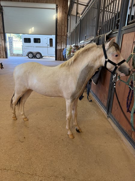 Cosmo is available due to my health issues. He is a buckskin pinto with blue eyes, and is AMHA and AMHR registered. He is good for grooming, clipping, baths, farrier, vet, stands tied, and goes on a hot walker. His sire is “Alliance Unforgettable Momentum” and dam is “PHR Idols Foxy Hawk”, grandsire is “First Knights Billy Idol”. I have more pictures and videos available. Please let me know if you have anymore questions. No scammers, please.