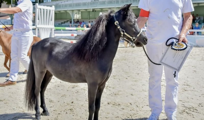 Je vends, pour le compte de son propriétaire, un étalon American Miniature Horse – robe noire, année de naissance 2017. Il séduit par son apparence charmante et son tempérament amical. Avec une taille au garrot de 86 cm, il est parfaitement adapté à la reproduction et présente les caractéristiques typiques de cette race exceptionnelle. Il possède la meilleure lignée et une documentation complète. Doux dans ses manières et très câlin. Il a été champion à trois reprises en France : - Champion de France : étalons de 2 ans - Champion de France : couleur noire - Champion de France : présentation cheval-humain Il est idéal pour la reproduction et constitue une véritable attraction pour les amateurs de Miniature Horse. Pour toute question ou pour organiser une visite, je reste à votre disposition. La visite est possible sur rendez-vous. Pour toute prise de rendez-vous, un acompte de 20 € est demandé. Cet acompte sera remboursé intégralement lors de la rencontre, que le cheval soit acheté ou non. Nous devons appliquer cette règle, car il arrive souvent que des rendez-vous soient fixés puis annulés sans préavis. Le prix est aussi bas parce que le propriétaire est dans une situation difficile et a été contraint de quitter son écurie. Le poney est actuellement chez nous et y restera jusqu’à ce que nous lui trouvions un foyer aimant. Vente uniquement à des cavaliers expérimentés. Une pension en paddock ou au moins beaucoup de pâturage par jour serait souhaitable.
