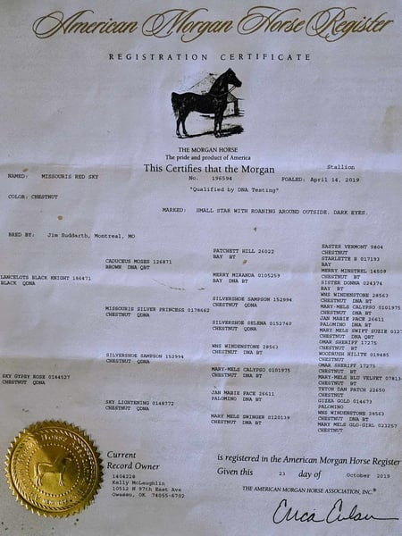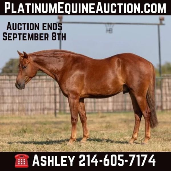 ONLINE AUCTION Place your bids at www.PlatinumEquineAuction.com Starting Bid $3500 Auction ends September 8th, 2024 Need a new saddle? Check out White Rock Saddles on our website or Facebook! “Sky” – 15.2H, 2019′ chestnut AMHR Morgan gelding… Sky is a unique registered AMHR Morgan gelding – America’s first developed breed! This breed was a huge part of our country and a big part of our history. It is said that you will never find a more enjoyable horse for the soul, than a Morgan. Their friendly people pleasing personality is exceptional. We do not get our hands on these very often!!! These are so sought after for their extremely sweet and kind personality and Sky is no exception. He absolutely loves people and would much prefer with a human than out with his buddies. He is about as not-hear/buddy/barn sour as a horse could come! He would rather be on your front porch stealing your coffee than out playing with the herd. Sky rides extremely well and is naturally about as uncomplicated to operate as they come. Sky guides anywhere you point him easily, he is exceptional in town and out on the trail. He has a big ground covering walk, easy smooth natural foxtrot, exceptionally smooth, soft lope and catches both of his leads, and he has a great huge stop if you just mention “whoa”. Sky seeks attention, but is also very careful, aware of his handler, and always eager to do what he is asked – there is a reason those who know this breed swear by them, these guys have been hand selected for 250 years for their extremely easy to be around dispositions. Morgans are known for their extra stout, strong stature, and Sky is on the large size, even for a Morgan. He would be great for anyone looking for a larger built horse, he will fill out just about anyone’s leg, and be able to comfortably carry just about any size of rider! There are not many specific horse breeds, that Disney made a whole movie out of! Don’t miss out on an opportunity to own one of these amazing horses! If you are looking for a personal horse, pet, and life horse, do not overlook Sky. He is young and has a whole lifetime ahead of him to live with his new family. Sky was just trimmed last week and he has absolutely excellent feet. His teeth were also just done by an equine dentist two weeks ago – at the same time he had his sheath cleaned, his ears preemptively treated for ticks, and he was also power packed wormed. Sky is also good to shoe, but he has great feet and goes really well barefoot – if his new owner prefers him to be shod, we can have him shod prior to him heading to his new home. He will arrive at his new home up-to-date and ready to go to work! To see additional videos, go to our website: BusterHorses.com or our Facebook page Buster Horses. Please call anytime for more information at 214-605-7174 Sky is located in Weatherford, TX – one hour from Dallas / Fort Worth International Airport. He is an easy day trip or fun overnight trip to come try out, from anywhere! We are experienced, knowledgeable sellers, and we can help with quickly arranging affordable shipping to any buyer’s location – we have experience shipping worldwide – including regularly to Hawaii, Canada, Mexico, Europe, and South Africa. Check our website for buyer reviews, more videos, additional info: etc: https://busterhorses.com/Sky. ONLINE AUCTION Place your bids at www.PlatinumEquineAuction.com Starting Bid $3500 Auction ends September 8th, 2024 Need a new saddle? Check out White Rock Saddles on our website or Facebook!
