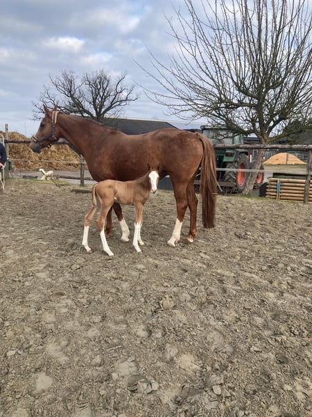 Verkaufe eine elegante belgische Sportstute, geboren im Jahr 2013. Das wunderschöne Fuchsfell unterstreicht ihre Ausstrahlung und macht sie zu einem echten Blickfang im Stall. Sie ist selbst bis 1.40m platziert gewesen und verletzungsbedingt aus dem Sport ausgeschieden. Sie hat in 2025 bereits ein gesundes Fohlen von Vigado geboren. Bei Interesse stehe ich gerne für weitere Informationen und eine Besichtigung zur Verfügung.